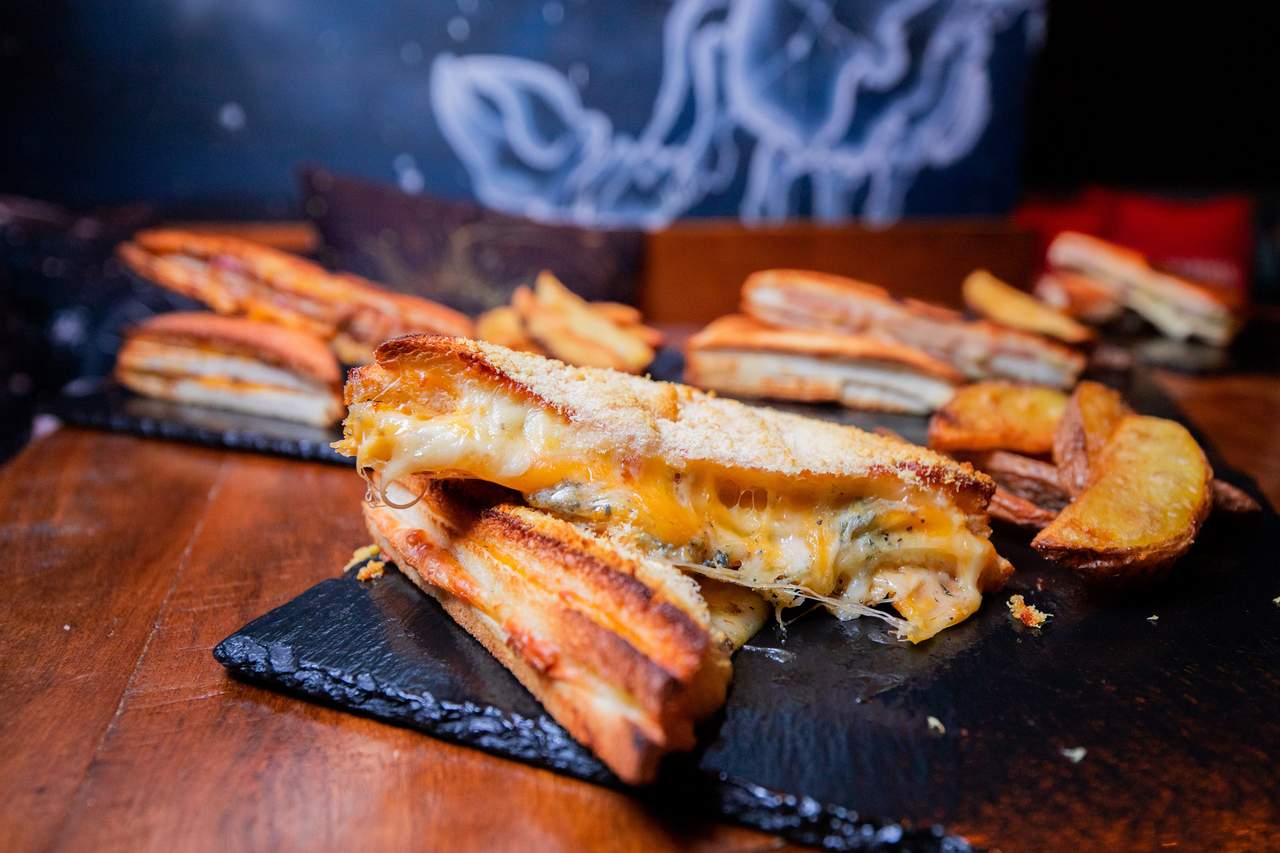 Una combinación cremosa de quesos fundidos envuelta en una cobertura crujiente de parmesano DOP, gratinado al punto justo. Todo acompañado de patatas fritas.