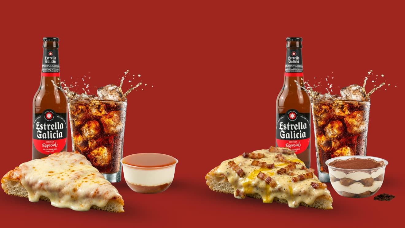 1 Porción de pizza clásica, 1 bebida y 1 postre