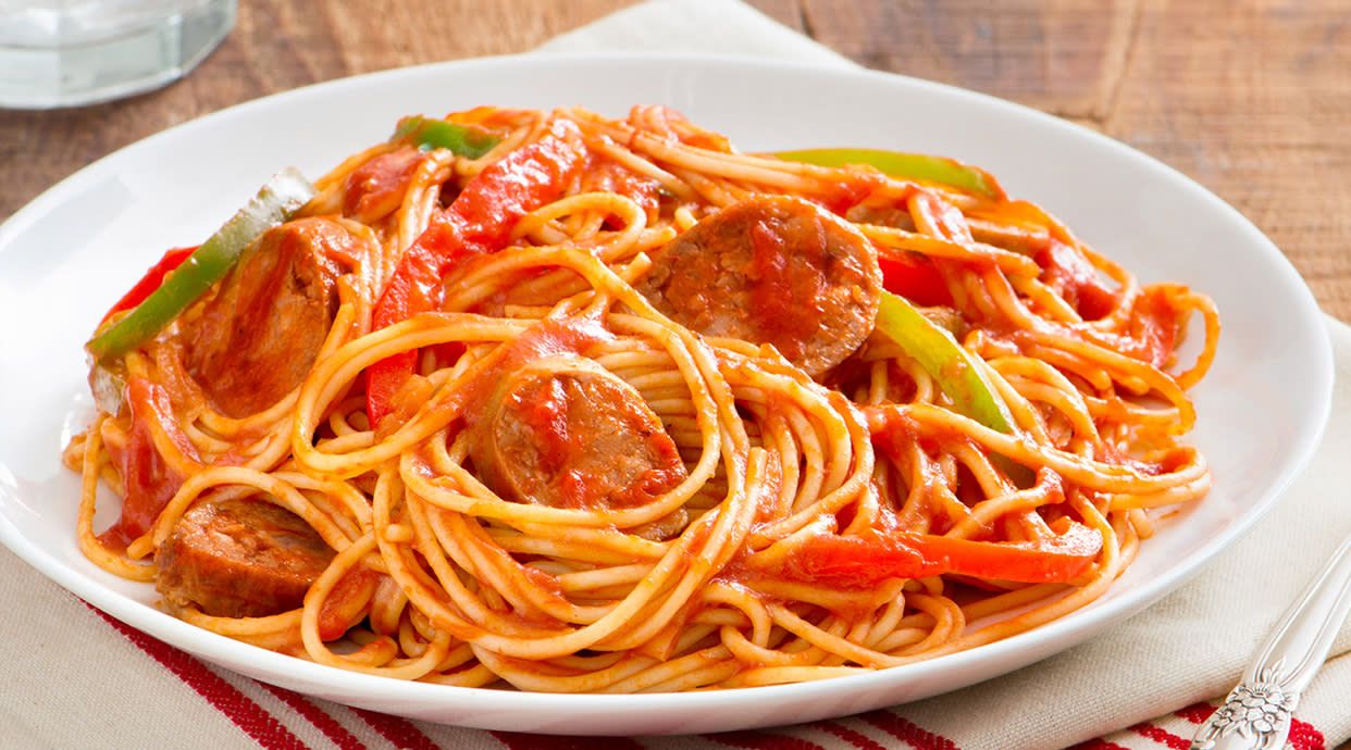 Albóndigas de carne mixta con pimiento, cebolla, zanahoria y guisantes