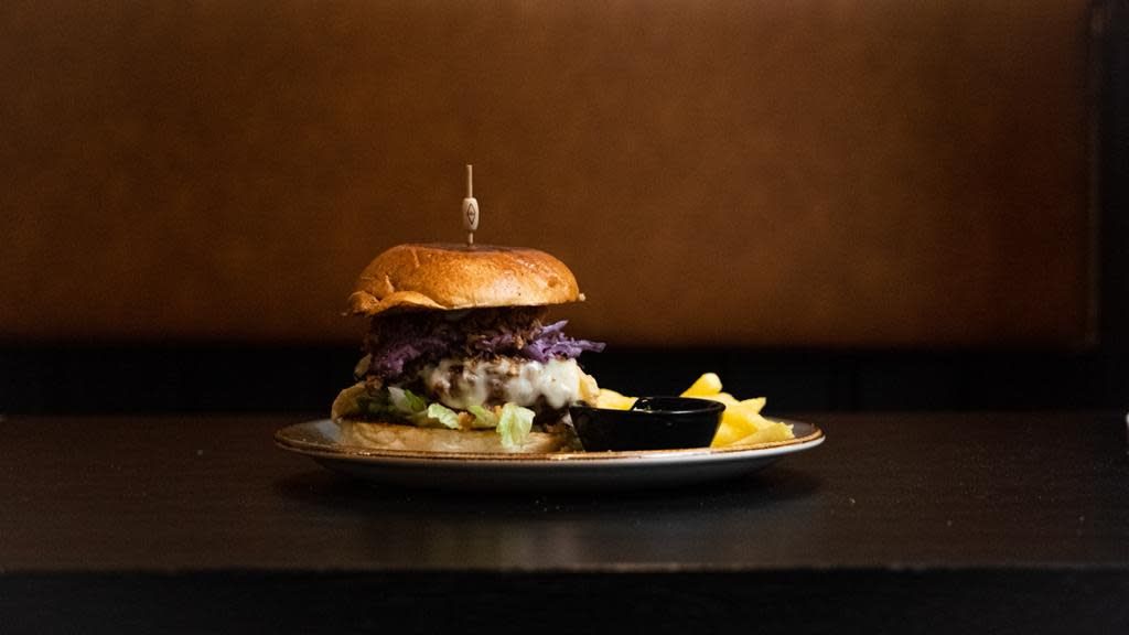 Patty de vaca vieja aplastada con doble queso, cebolla crocante, bacon, pepinillos encurtidos y salsa suk. Incluye guarnición de patatas fritas.