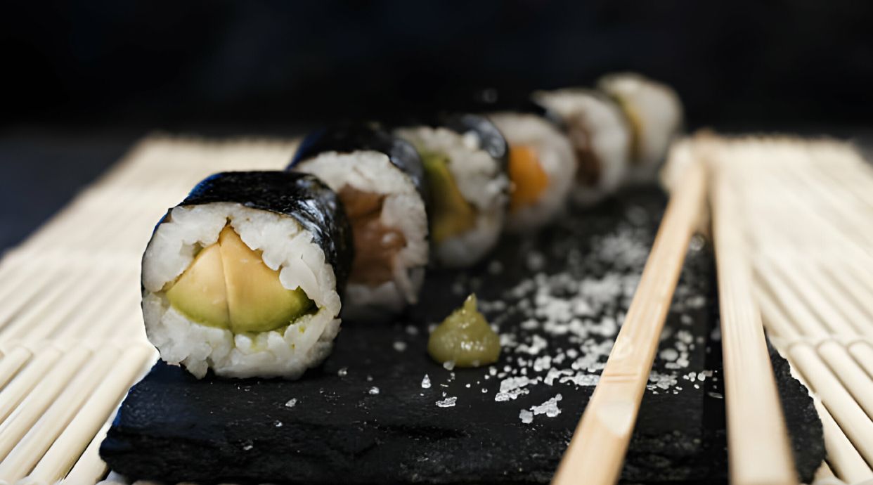 Cangrejo, aguacate, atún, pez mantequilla y salmón en sashimi