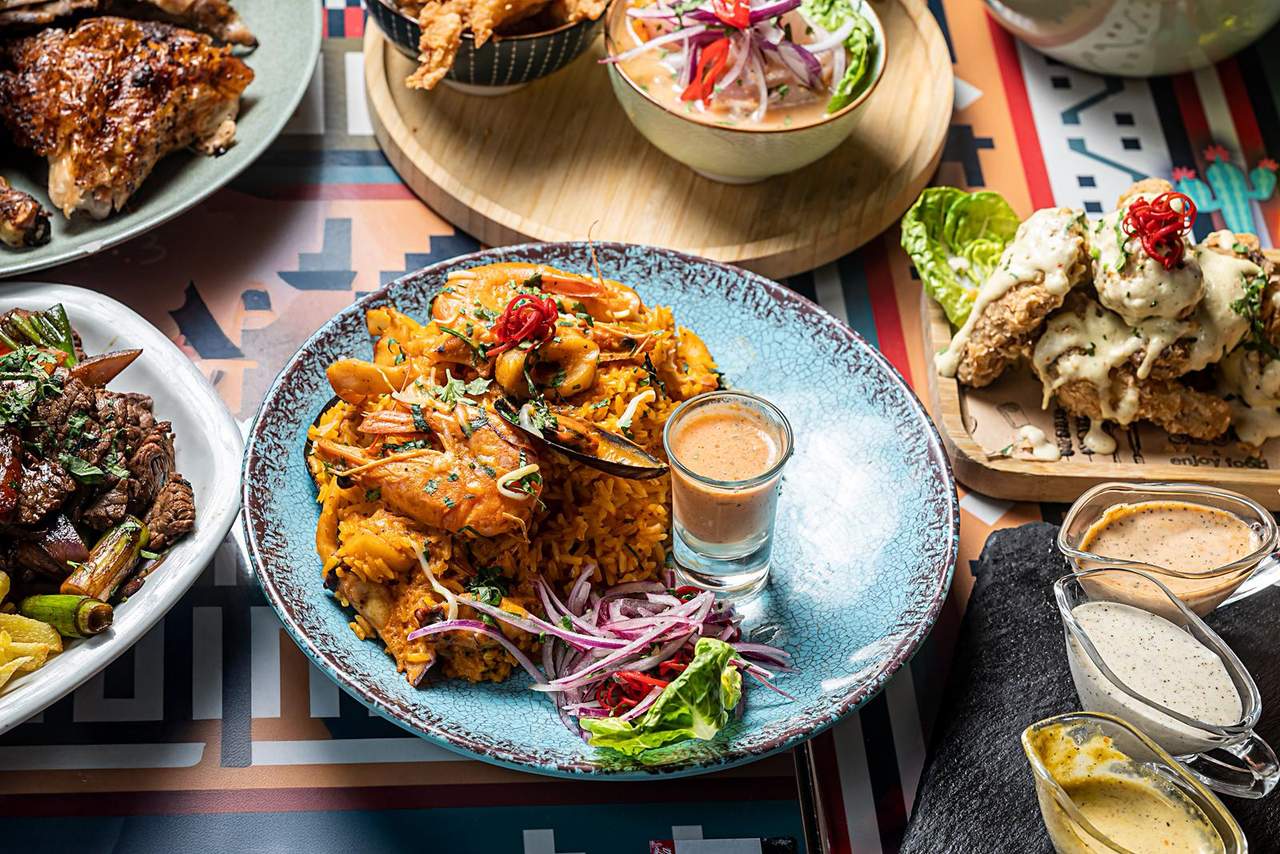 Chaufa de marisco, ceviche clásico y chicharrón de pescado