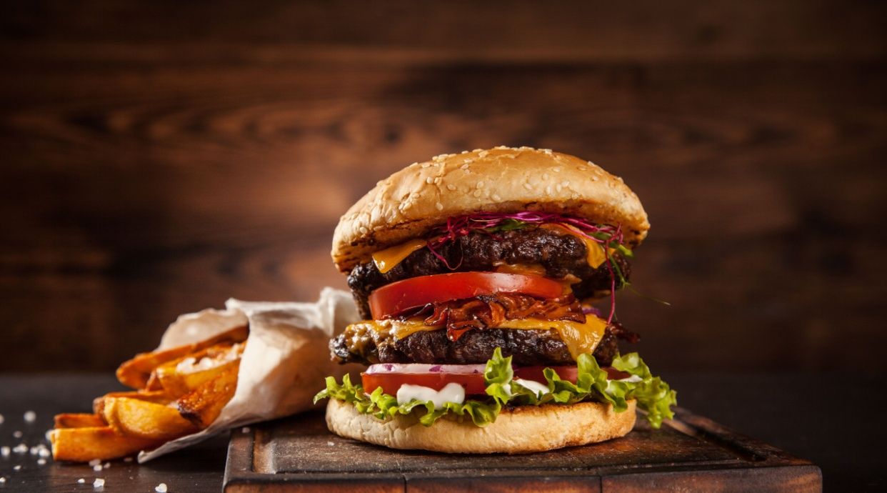 Deliciosa hamburguesa de ternera incluye ,Lechuga, tomate mayonesa, kétchup y queso, bebida y patatas fritas
