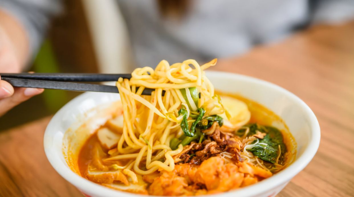 Tallarines con cerdo y soja fermentada. Contiene gluten y soja