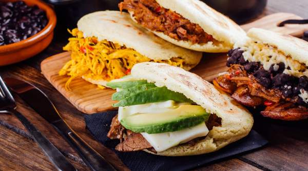 Arepa rellena con Carne mechada venezolana y queso rallado llanero