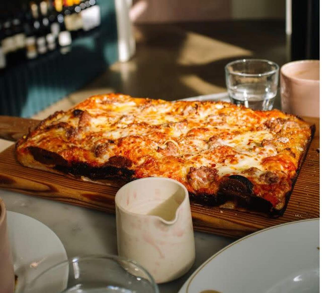 Pizza blanca con butifarra italiana, friarielli brócolis napolitanos y mozzarella