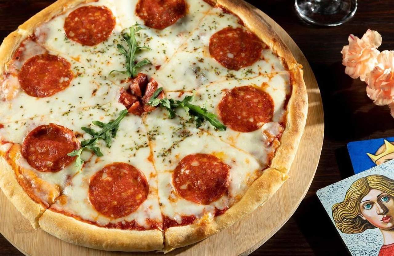 ხორბლის ფქვილი, წყალი, ზეთი, საფუარი, მარილი, ტომატის სოუსი, სალიამი, მოცარელა, პომიდორი, ბულგარული წიწაკა, ორეგანო