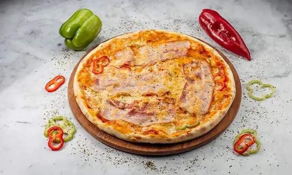 დიამეტრი: 33 სანტიმეტრი შემადგენლობა: ყველი გაუდა, ყველი მოცარელა, ყველი პარმეზანი, ძეხვი ბეკონი, ბულგარული წითელი, ბულგარული მწვანე, პიცის სოუსი, ორეგანო