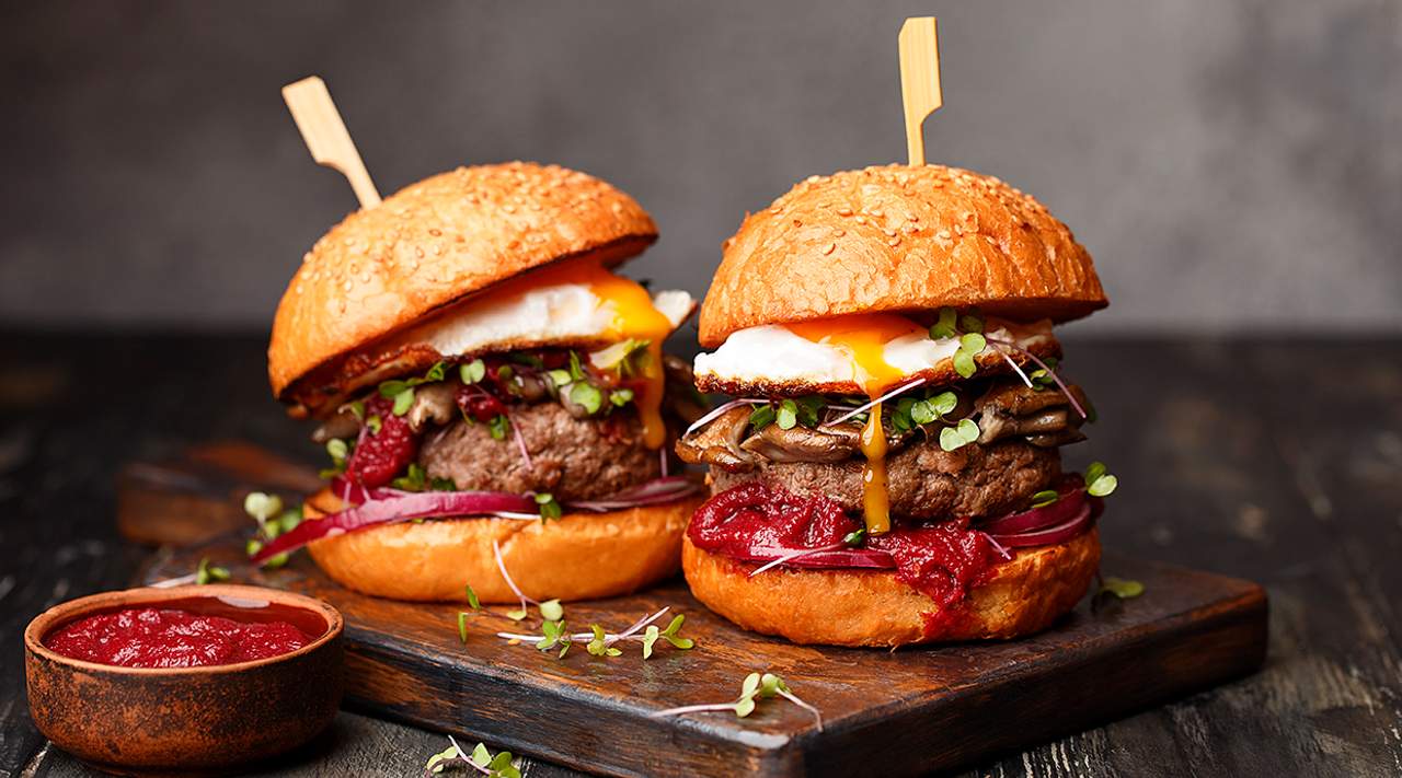 panino con Hamburger di manzo, pomodoro, insalata, cheddar e uovo