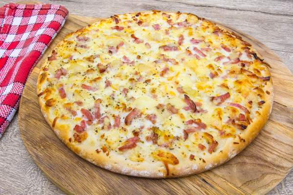 Pomodoro, mozzarella fior di latte, cipolla, gorgonzola, salsiccia