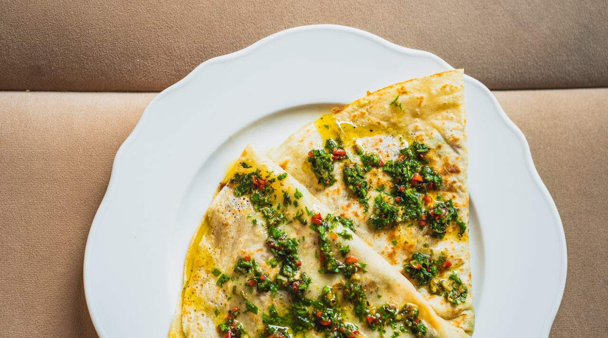 naleśnik, mozzarella, chorizo, czosnek, ostra papryczka pietruszka, domowy colesław. Sugerowany sos: sriracha mayo.