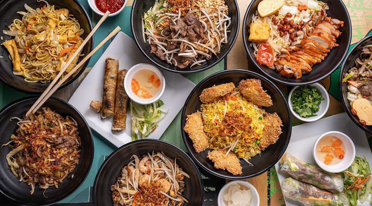 Makaron Pho: por, seler, cebula czerwona i prażona, kiełkiMakaron Mien: kapusta pekińska, marchew, grzyby munch, cebula prażona, kiełkiMakaron Mi: kapusta pekińska, marchew, kiełkiPho - ryżowy, wstążkiMien - sojowy, przezroczystyMi - pszenny, żółty