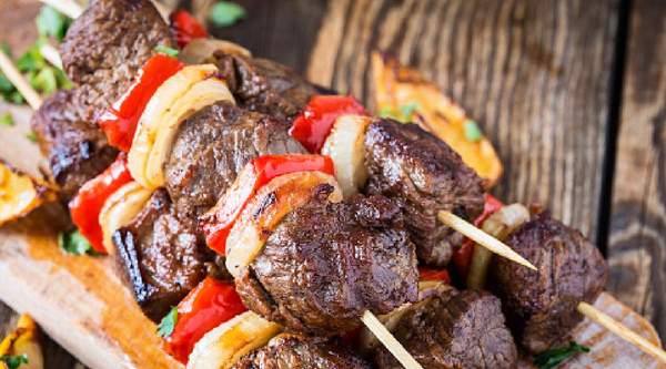 z kurczakiem lub baraniną, frytkami, warzywami i sosem do wyboru