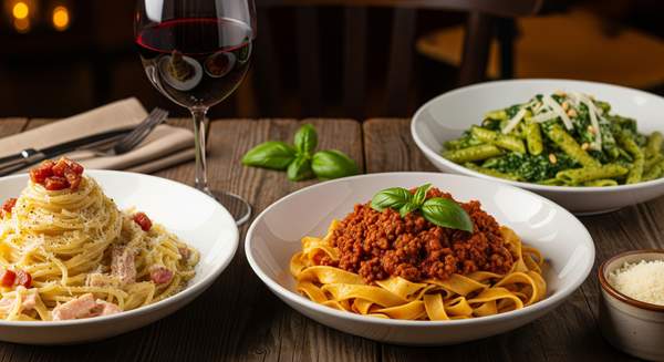 Massa clássica italiana al dente, servida com molho cremoso de gema de ovo, queijo parmesão, bacon crocante e um toque de pimenta preta.