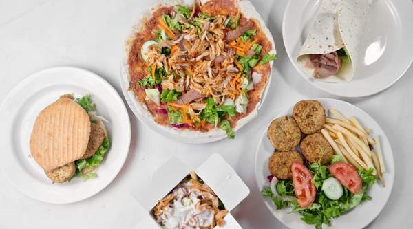 Falafel estaladiço no pão de Donner com ou sem salada.