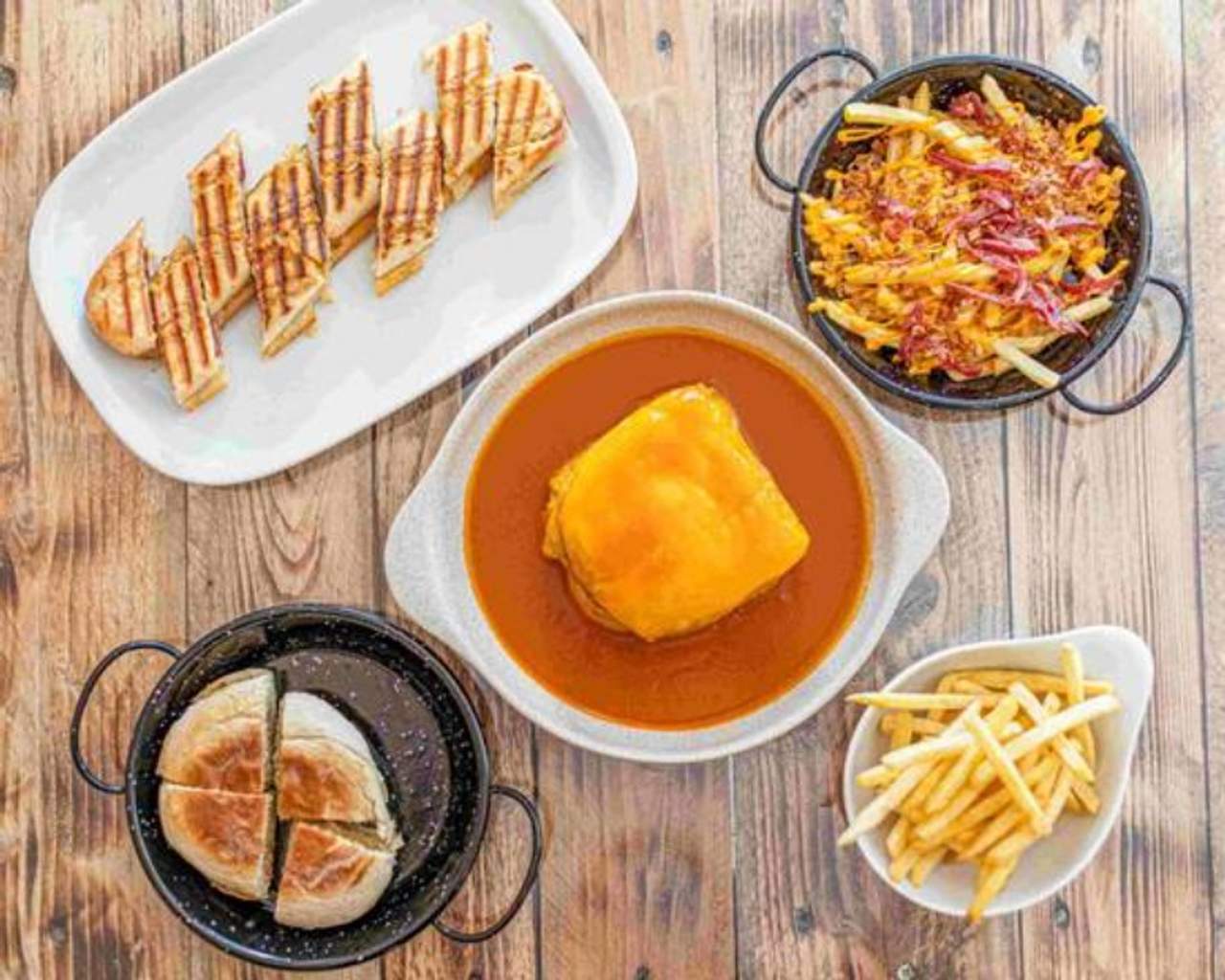 Carne vitela, Queijo, fiambre, mortadela, linguiça e molho de francesinha da casa.