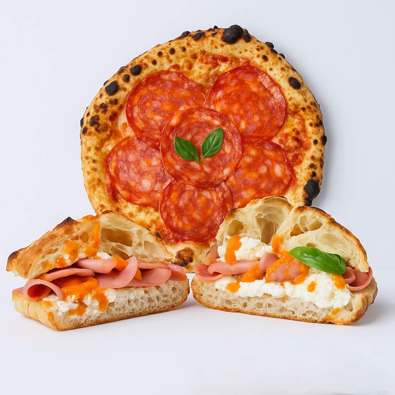 Două pizza delicioase, perfecte de împărțit sau de savurat solo. Aluat dospit lent, ingrediente fresh și gust garantat.