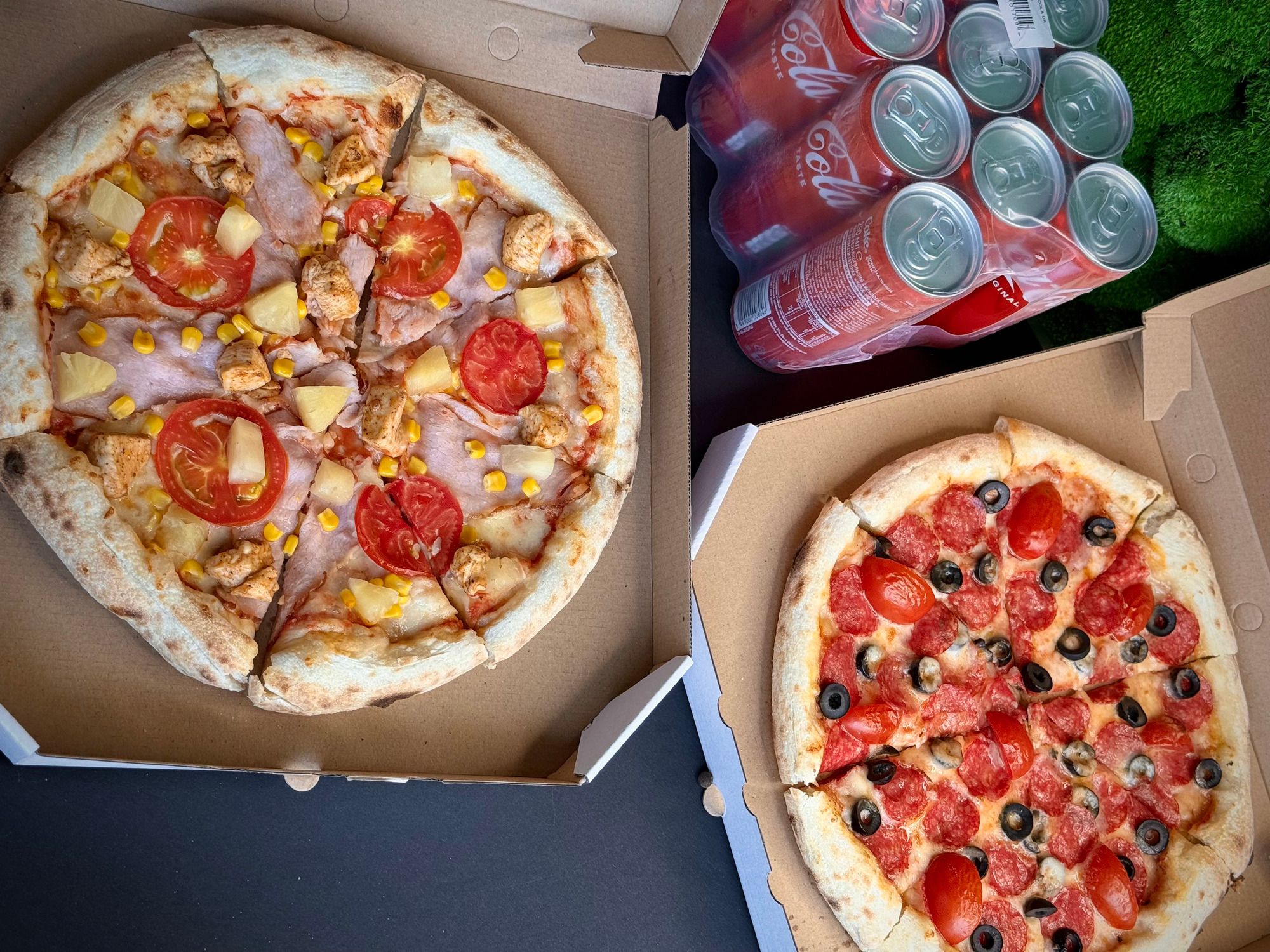 Вершки, мʼясо курки посмажене, сир моцарелла, ананаси, кукурудза