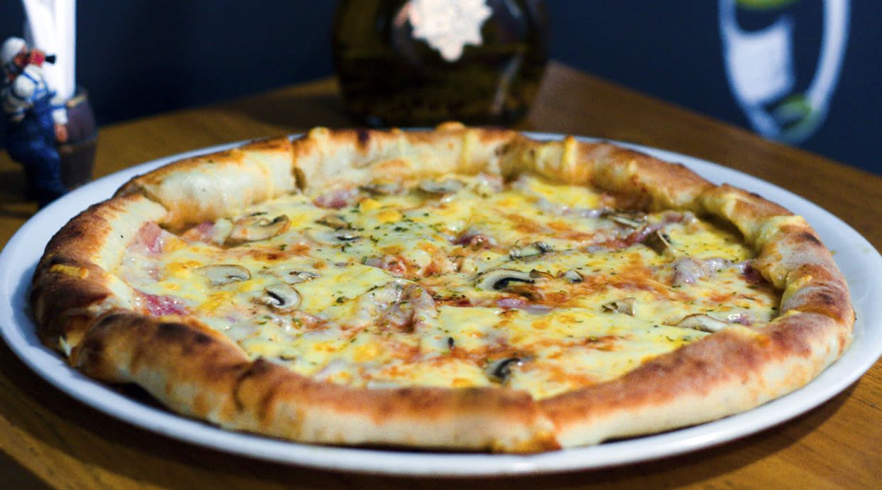 Sos, sir, šunka, peka, šampinjoni, masline