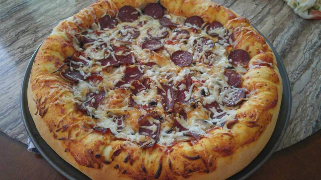 Tijesto, sos, sir, jaje, feferoni, šampinjoni, šunka, kulen