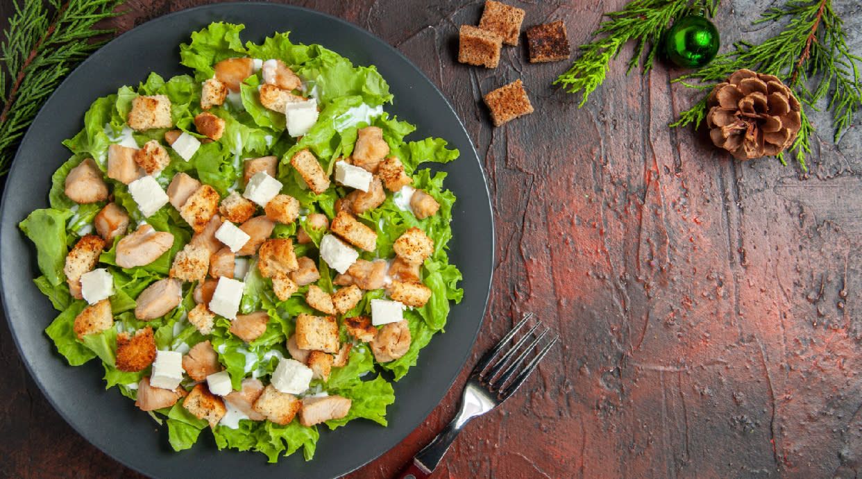 Маруля, чери домати, крутони, пармезанови люспи, Цезар сос