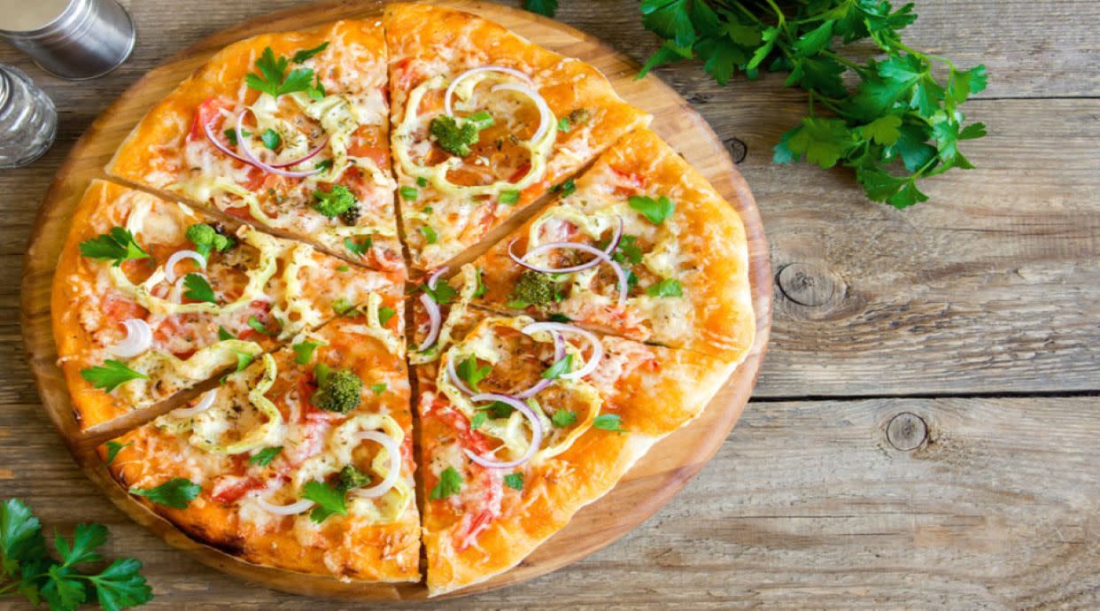 Домати, краставици, лук, чушка, гъби, шунка, сирене, кашкавал, яйце