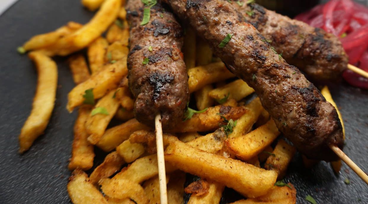 Поднесен с царевица в масло с билки, пържени картофи , BBQ сос,бонбон от Филаделфия и бейби кисели краставички
