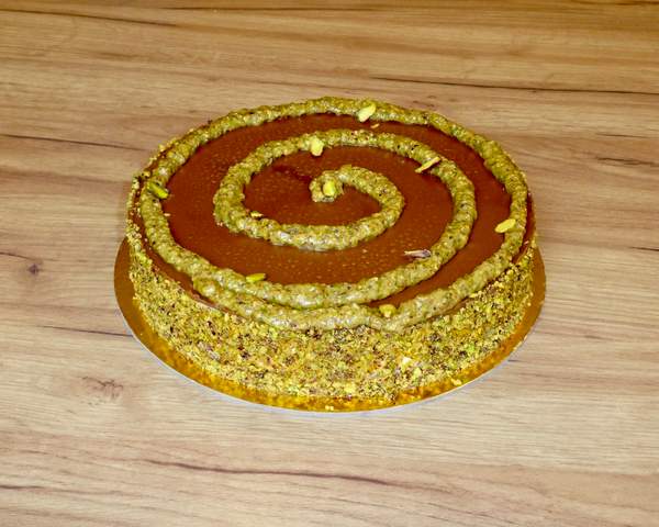 Хрупкави блатове от шамфъстък, нежен домашен крем с маскарпоне с леки лимонови нотки, обливка от млечен шоколад и шамфъстък. Ал. 8,7 - 150г