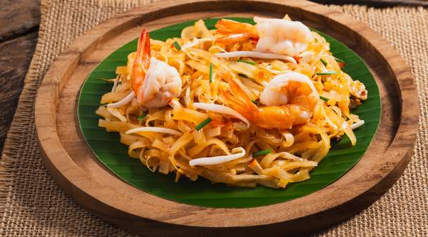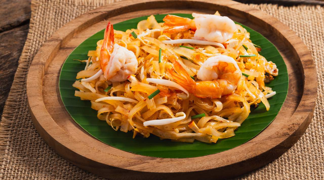 Noodles de arroz con gambas, tamarindo, huevo y ajos tiernos. Alérgenos: crustáceos, pescado, huevo, cacahuete y gluten.