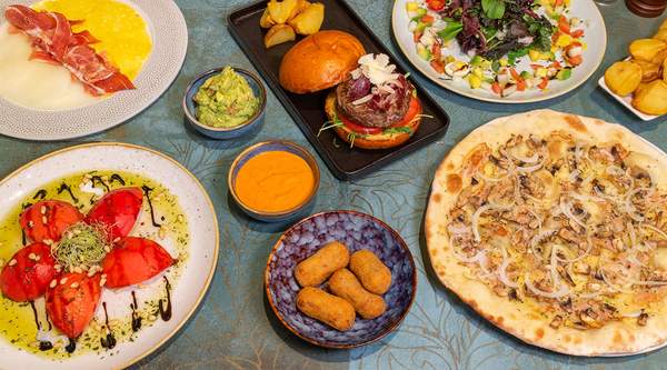 Ternera (200 g.), tomate, rúcula, queso parmesano y jamón ibérico