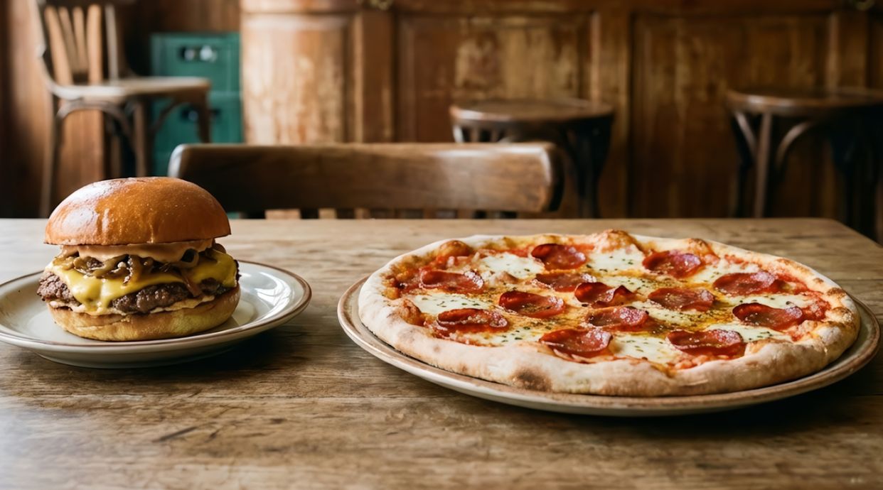 Pizza original con mermelada de tomate, mozzarella y pepperoni.