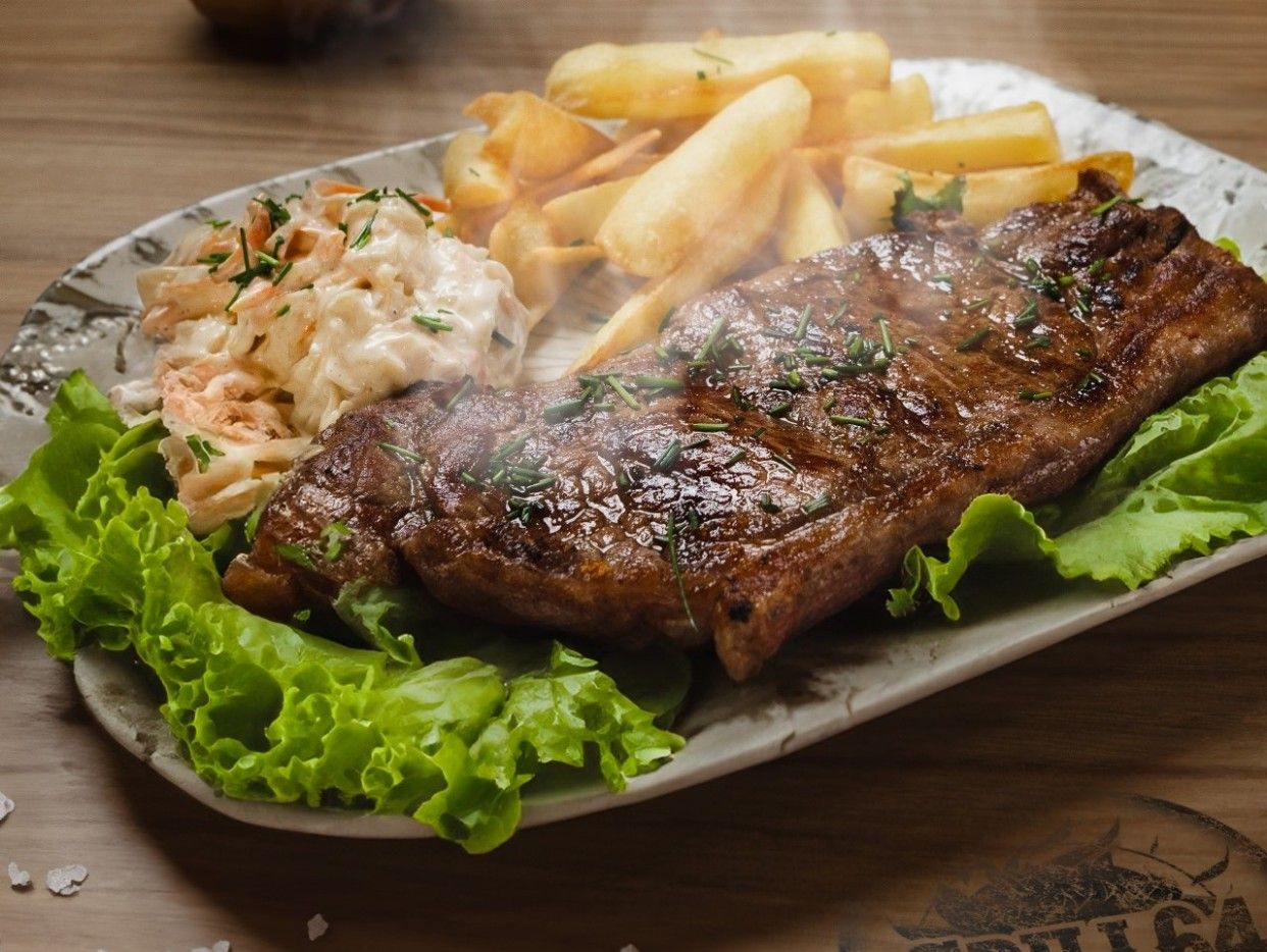 ENTRAÑA DE TERNERA CON PATATAS FRITAS Y ENSALADA