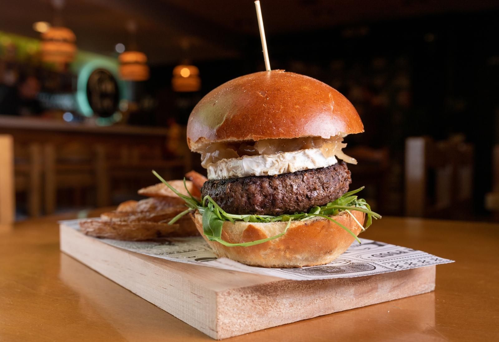 Un toque atrevido: 200 g de carne de ternera, con queso de cabra suave, rúcula fresca y una delicada reducción de frutos del bosque. Todo dentro de un pan brioche, acompañado de patatas fritas caseras y una bebida a tu elección.