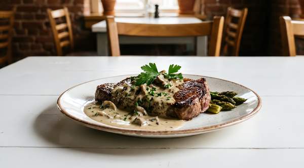 Jamoncitos de pollo en salsa de champiñones