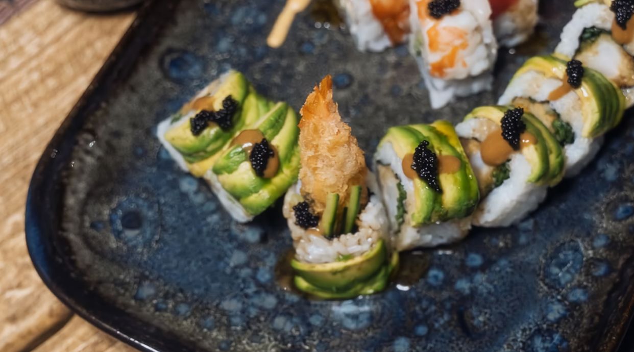 Atún, curatado y hierbabuena, salmón, ají amarillo y yuzu, samachi, crema yakiniku y cilantro, Vieira, tobiko de yuzu