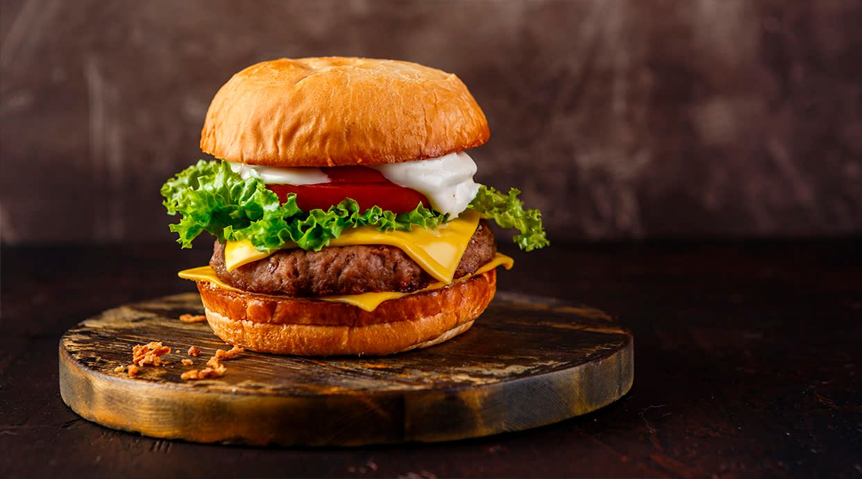 Dos hamburguesas de carne de ternera de 180gr con queso cheddar en todas sus capas, salsa sweet chili, pepinillo y lechuga.