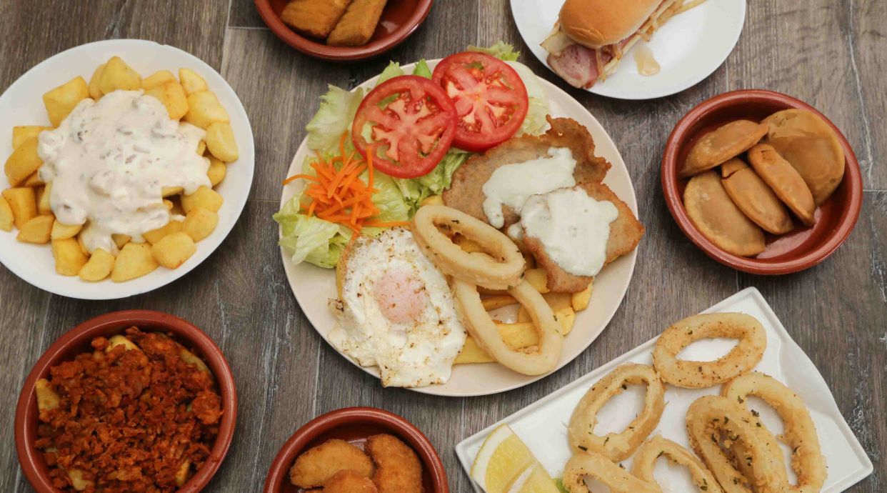 Croquetas, gambas, bolitas de queso, empanadillas y calamares