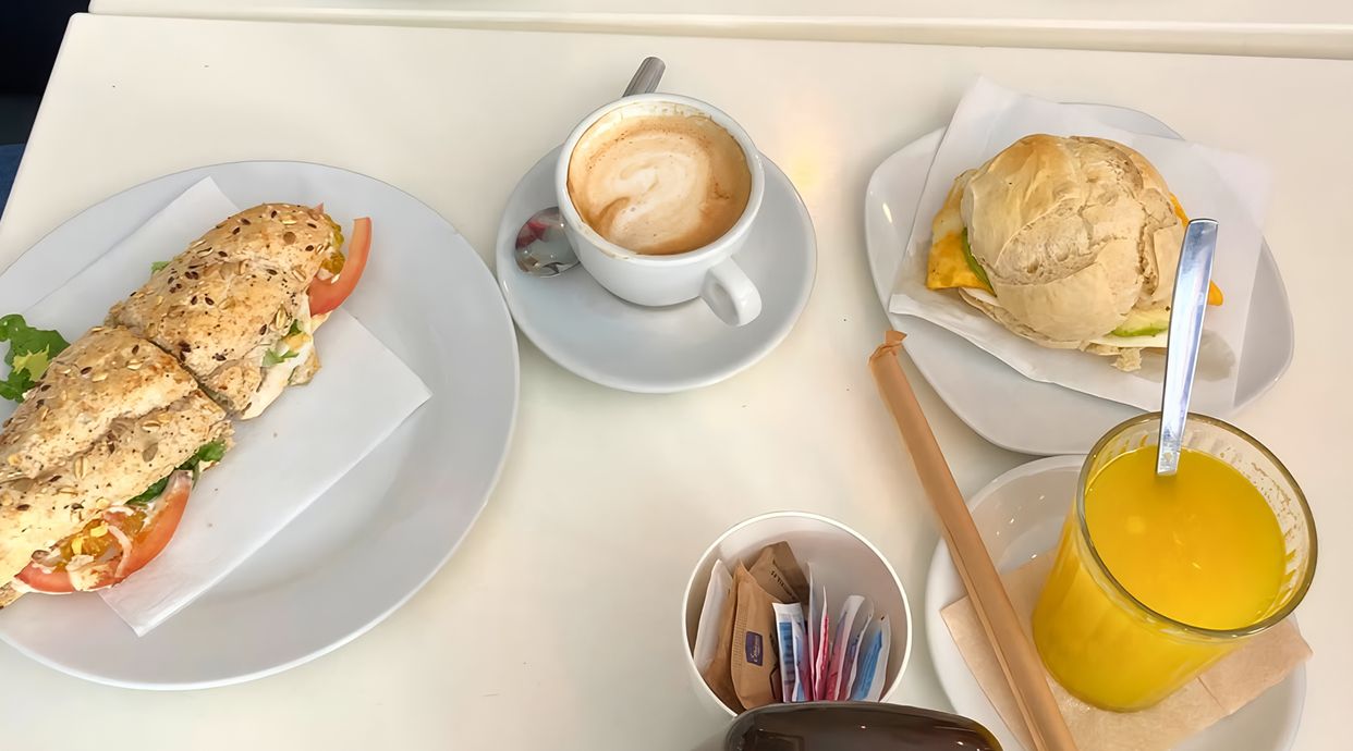 Un bocadillo, zumo de fruta natural (330 ml.) y un dulce