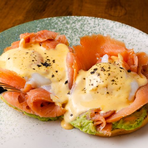 Aguacate laminado, pata de cerdo, queso ahumado, alioli de aguacate, huevo frito y piel de cerdo crujiente