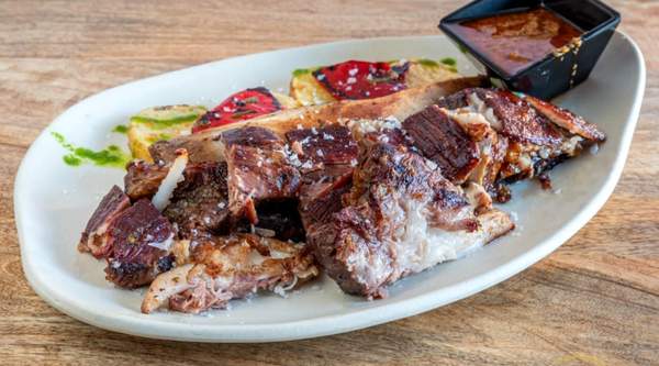 Pluma Ibérica a la parrilla, salsa de calabaza y puré de yuca