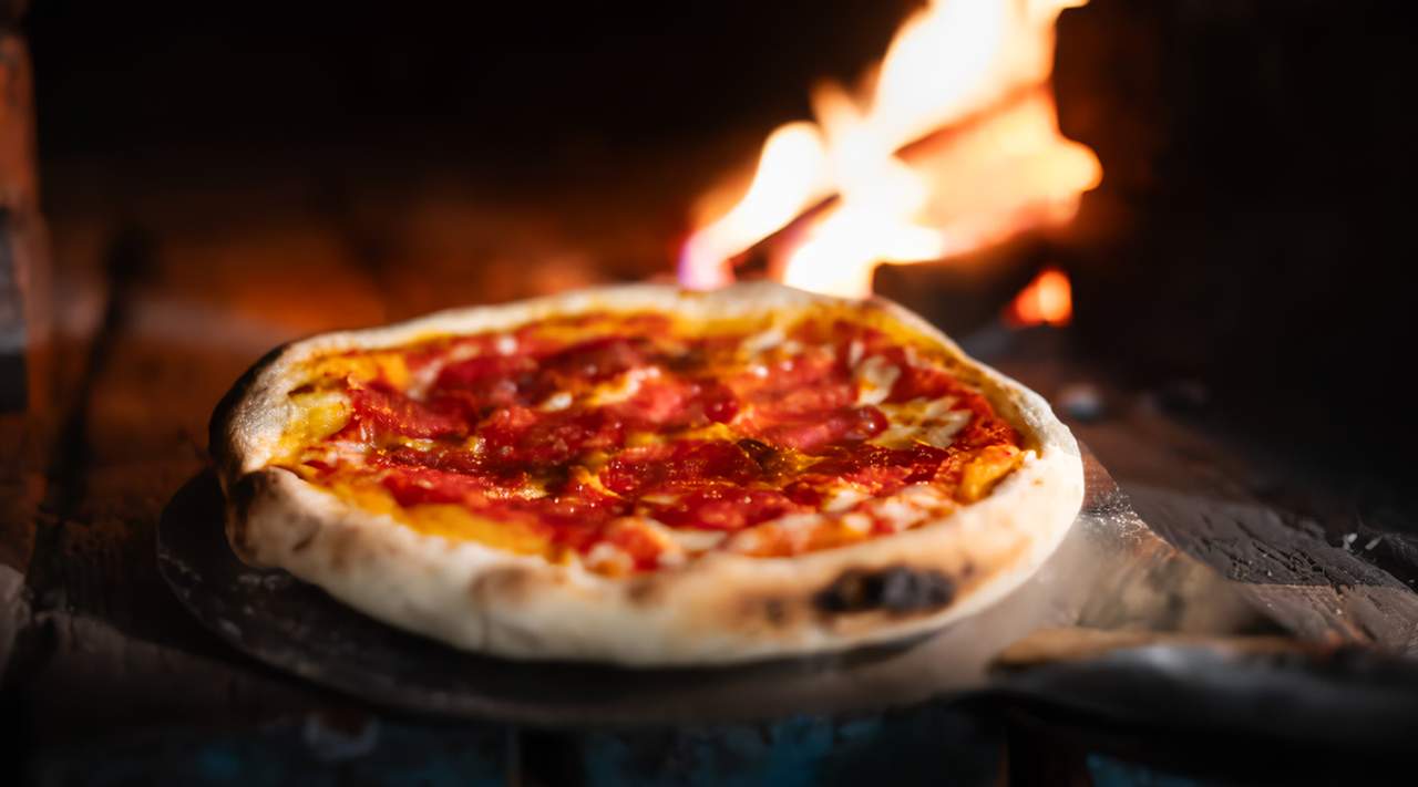Salsa arrabbiata di sicilia, mozzarella fior di Latte, rodajas de pepperoni y queso curado local