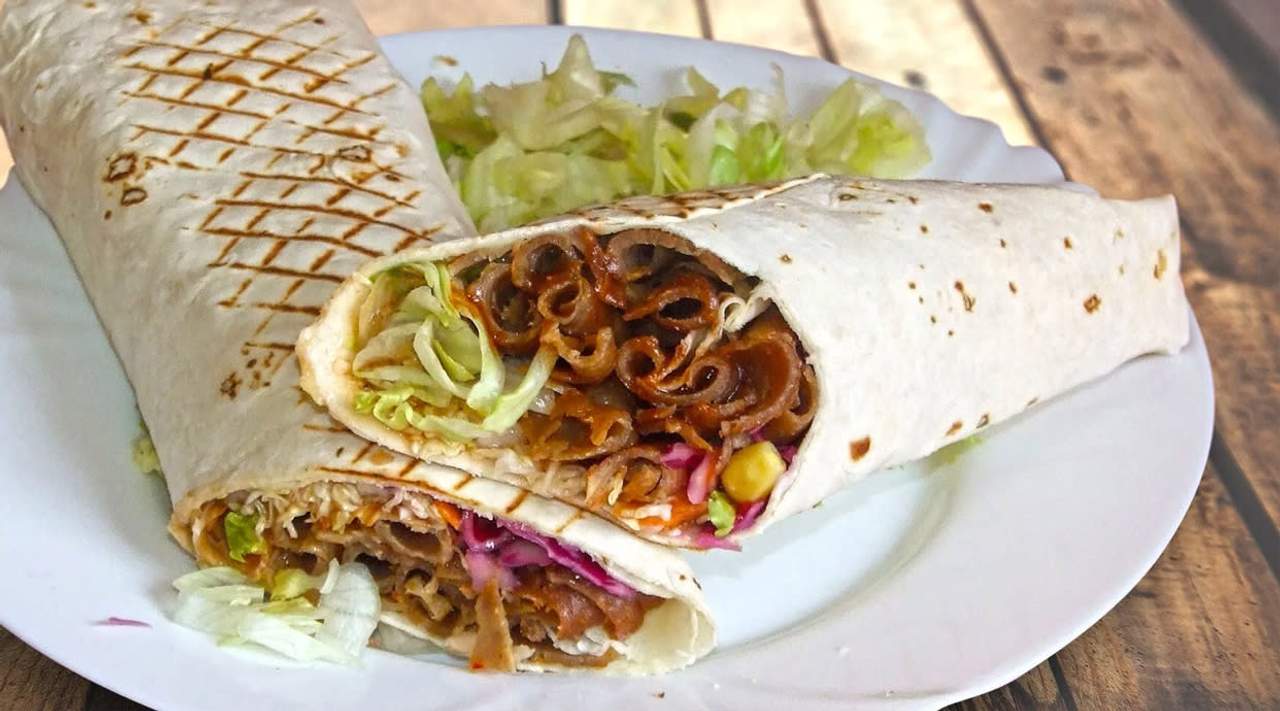 Salsa de yogur, ternera picante, lechuga, cebolla, tomate y queso