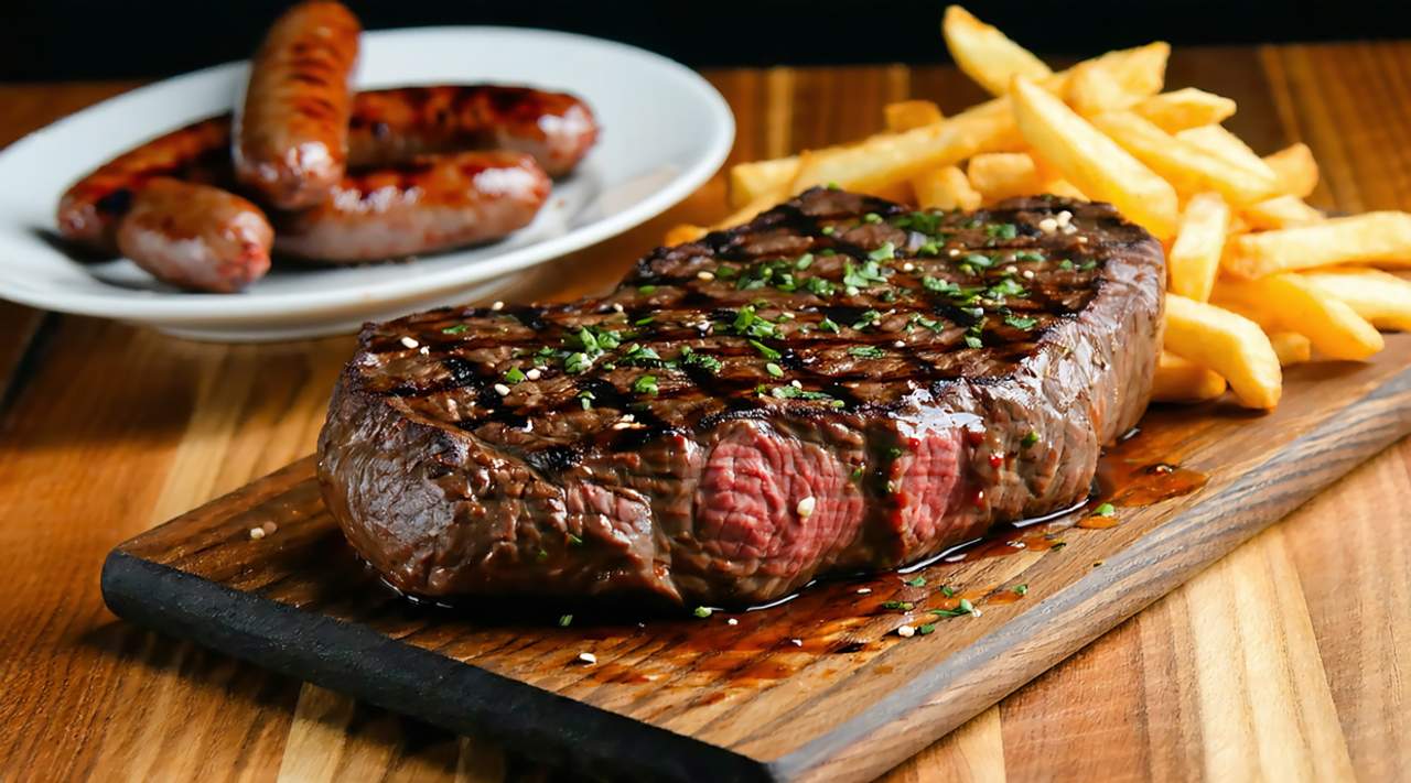 TÍpico corte Argetino señoral, que se lo suele comer es su punto jugoso, dado que tiene un borde de grasa que aporta un sabor único al paladar