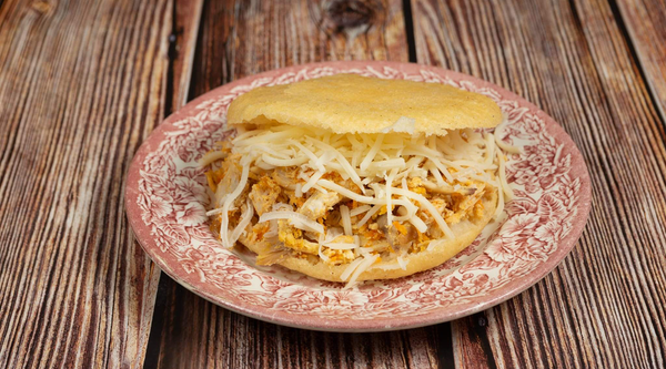 Tortilla frita, carne picada, chimol, queso, huevo y encurtidos.