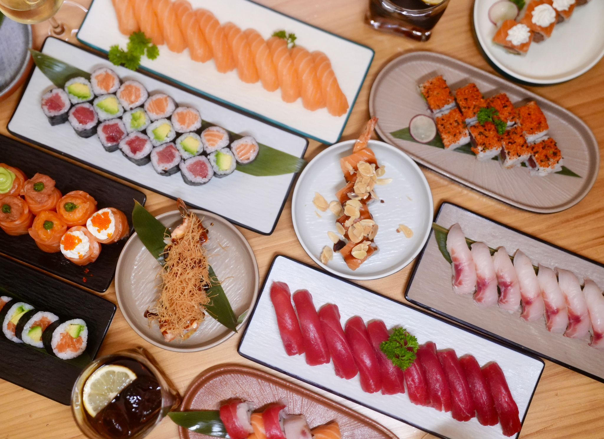 12 Nigiri (4 salmón, 4 atún, 2 lubina y 2 lagostinos), 16 uramaki (8 salmón aguacate y 8 gambas kataifi), 12 hosomaki (6 salmón y 6 aguacate), 13 sashimi (3 salmón, 3 atún, 3 suzuki, 2 gambas vermella y 2 cigalas)