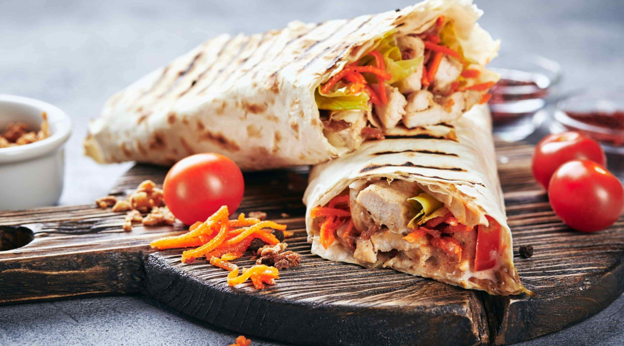 Con pollo, ternera o mixto, ensalada salsas y papas dentro