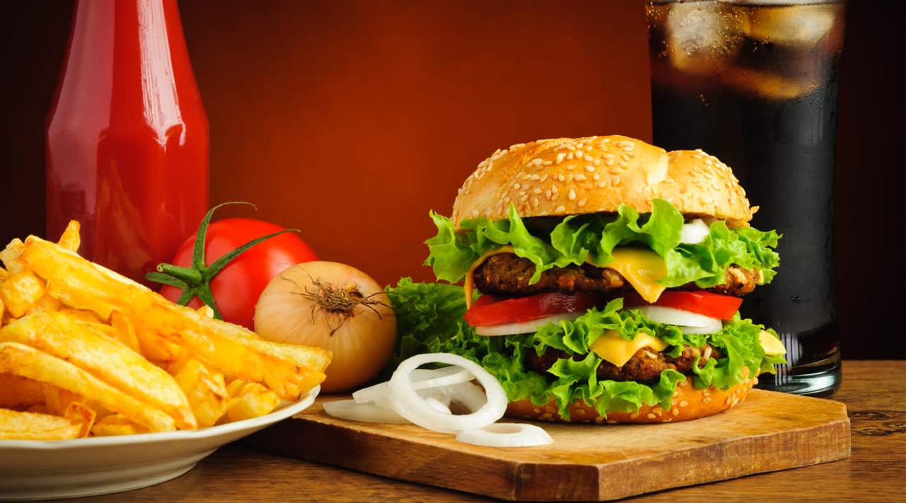 Jugosa Carne de ternera de (180 g,) acompañada de lechuga com rodaja de tomate, queso, Ketchup, mayonesa y pan con ajonjolí