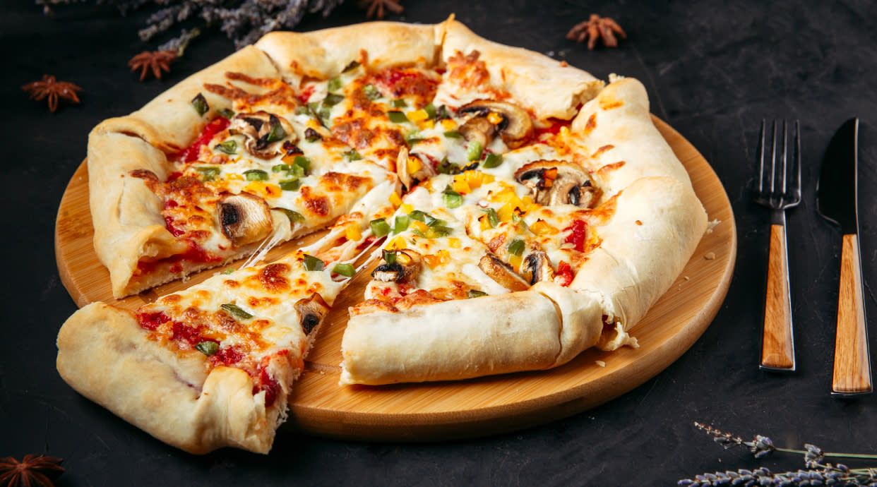 Salsa de tomate, mozzarella, champiñones portobello, tomate seco, queso de cabra, pata asada, pisto de ajo con perejil y anchoa