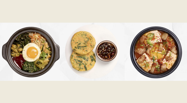 Famoso arroz coreano cocido a la cazuela, acompañado de un huevo frito y múltiples variedades de vegetales con salsa agripicante