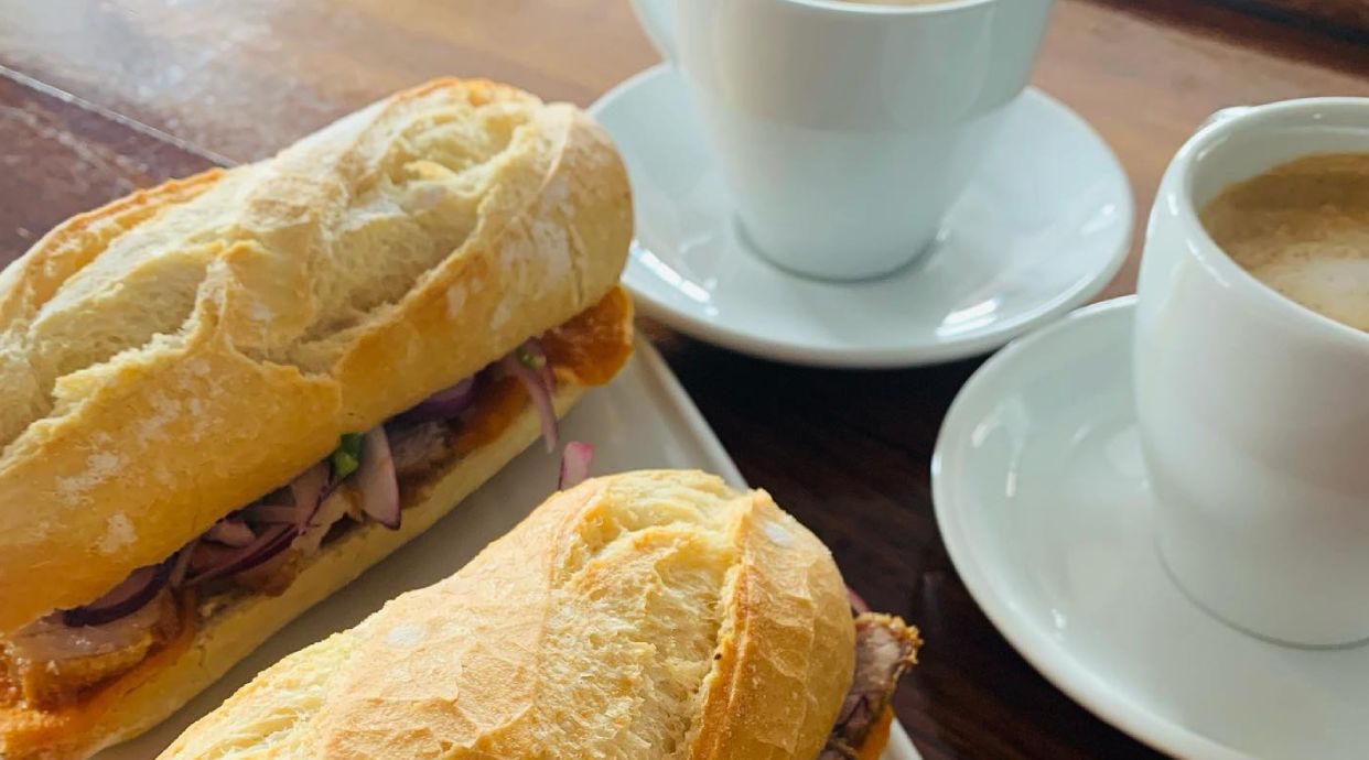 2 panes con chicharrón y 2 chichas moradas de 500ml.